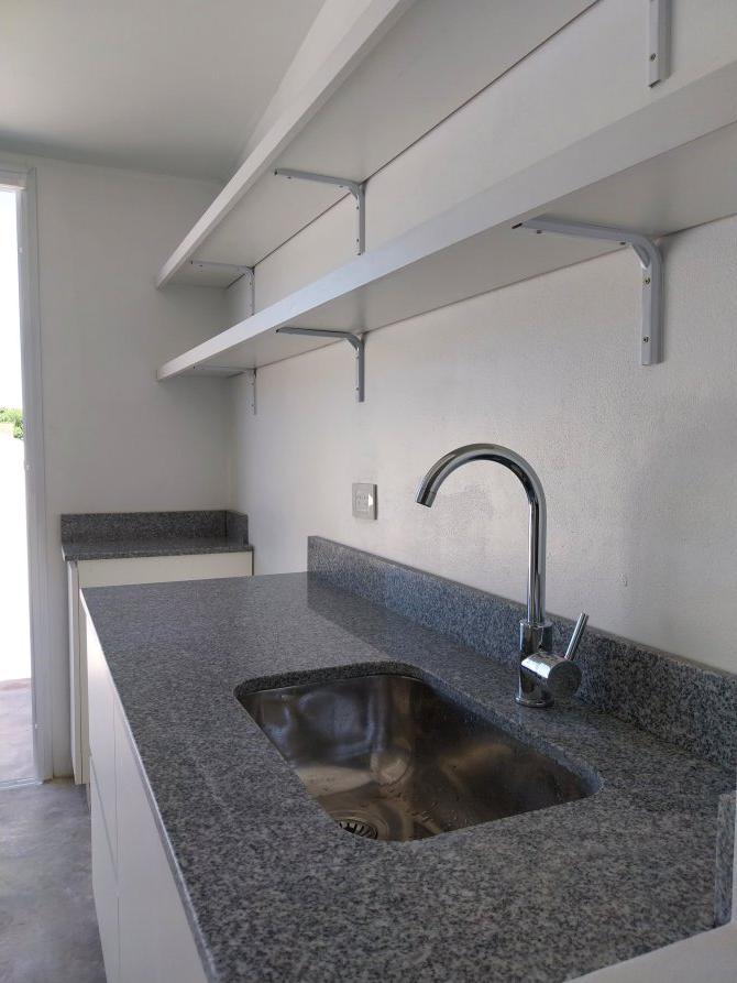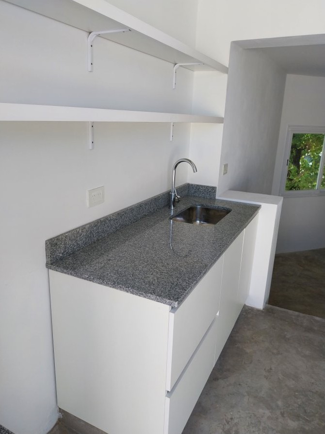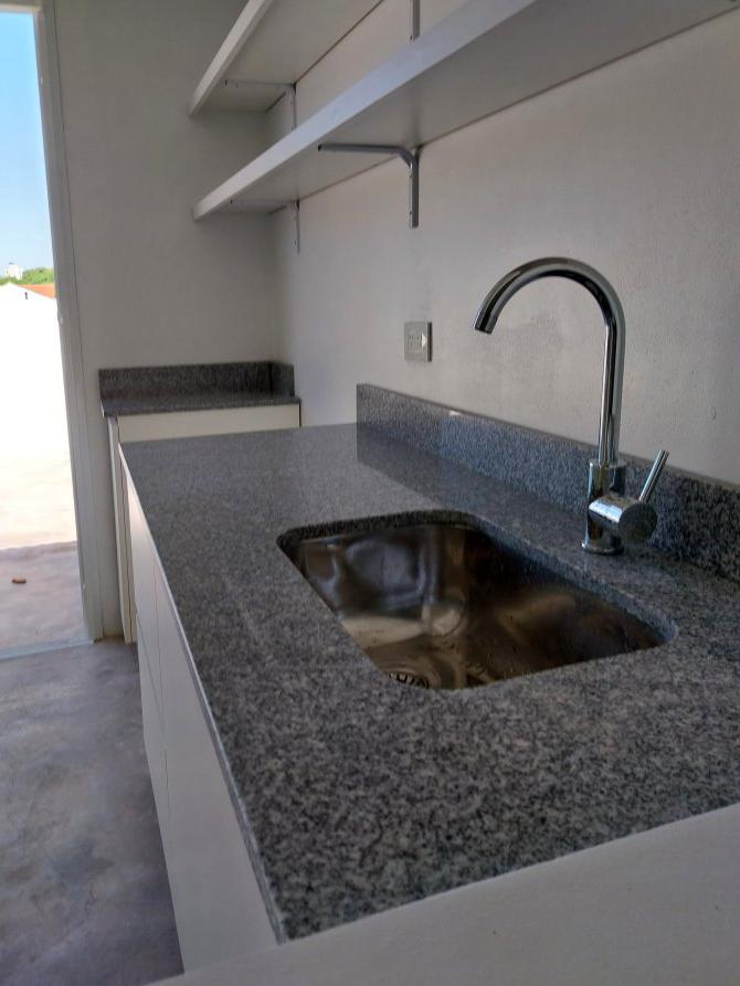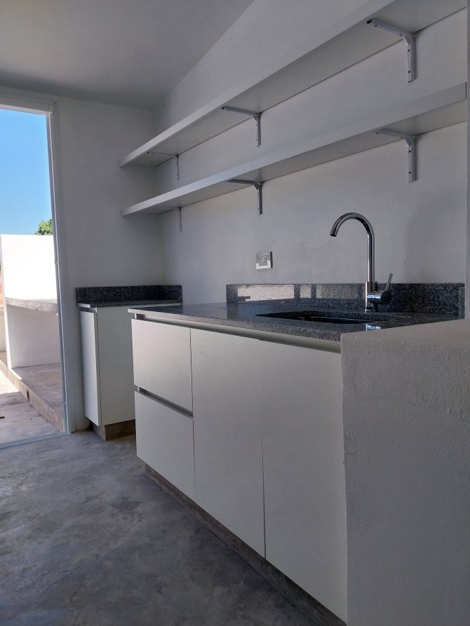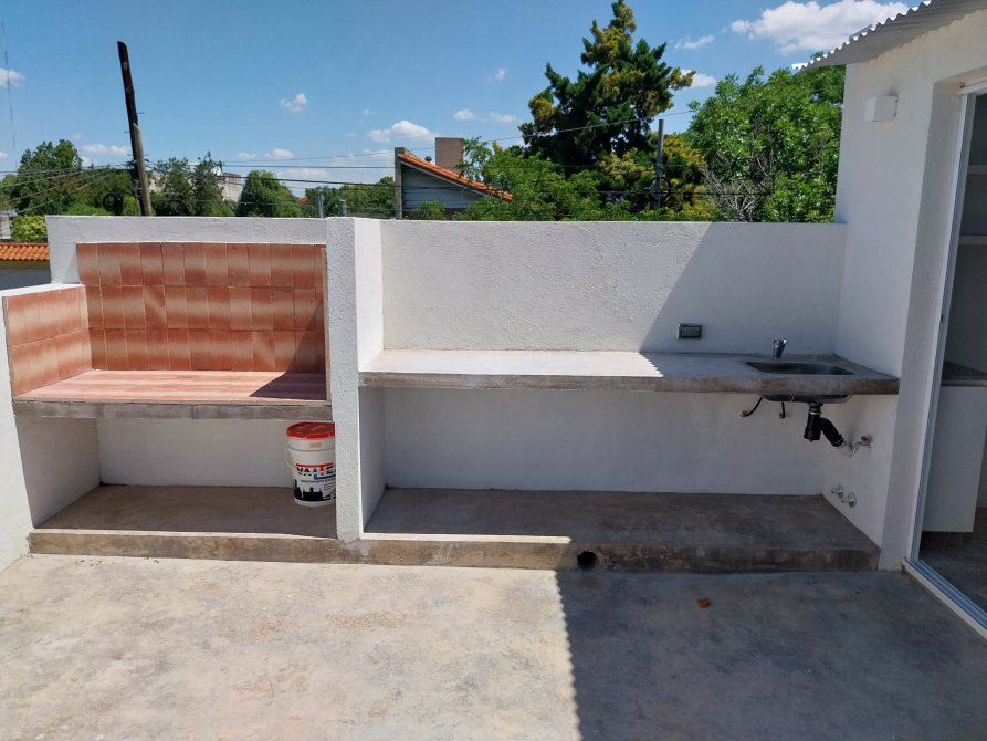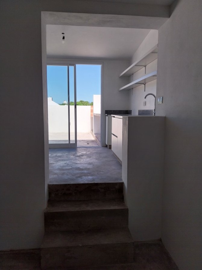 Compuesto por: Acceso por puerta placa de color blanco sobre línea municipal, puerta lateral de cámara de inspección y motor de agua bajo escalera; Escalera con escalones de cemento, con baranda, puerta de madera de acceso, espacio de guardado, portero eléctrico y timbre marca COMMAX. Llave de luz en pared con TRES llaves térmicas y disyuntor. Baño: Lavatorio sobre mesada de losa, canilla con DOS volantes, con toallero de mano, porta toalla, inodoro con mochila, bidet, habitáculo de ducha con canilla y TRES volantes, ducha superior cuadrada, pequeña ventana de ventilación con manija de apertura. Dormitorio (1) Al frente, con ventana de aluminio fija con ventana de apertura lateral con sus respectivos vidrios. Dormitorio (2) Interno, con ventana de aluminio fija con vidrio esfumado y ventana de apertura lateral con sus respectivos vidrios; Living comedor en ochava con una ventana de aluminio con DOS hojas corredizas y una ventana fija de aluminio con ventana de apertura lateral. Acceso a cocina por tres escalones cementados, conformado por: Mesada de granito, con bacha simple con grifería mono comando, bajo mesada de madera con DOS puertas inferiores con estantes y DOS cajones con sus rieles. Segunda mesada de granito con bajo mesada de madera con un estante. Artefacto de cocina “A estrenar” marca PHILCO con 6 perillas. DOS estantes superiores de madera. Tercera mesada de granito con espacio para heladera, con bajo mesada con espacio libre para micro ondas y un cajón con puerta con un estante y espacio para lavarropas. Acceso a la terraza: Mediante puerta corrediza de marco de aluminio con sus respectivos vidrios, con mesada de cemento, bacha simple con grifería mono comando; espacio para parilla revestido de ladrillos refractarios; CINCO spots inferiores y DOS spots superiores; Habitáculo para el termo tanque eléctrico de 55 litros marca SAIAR.